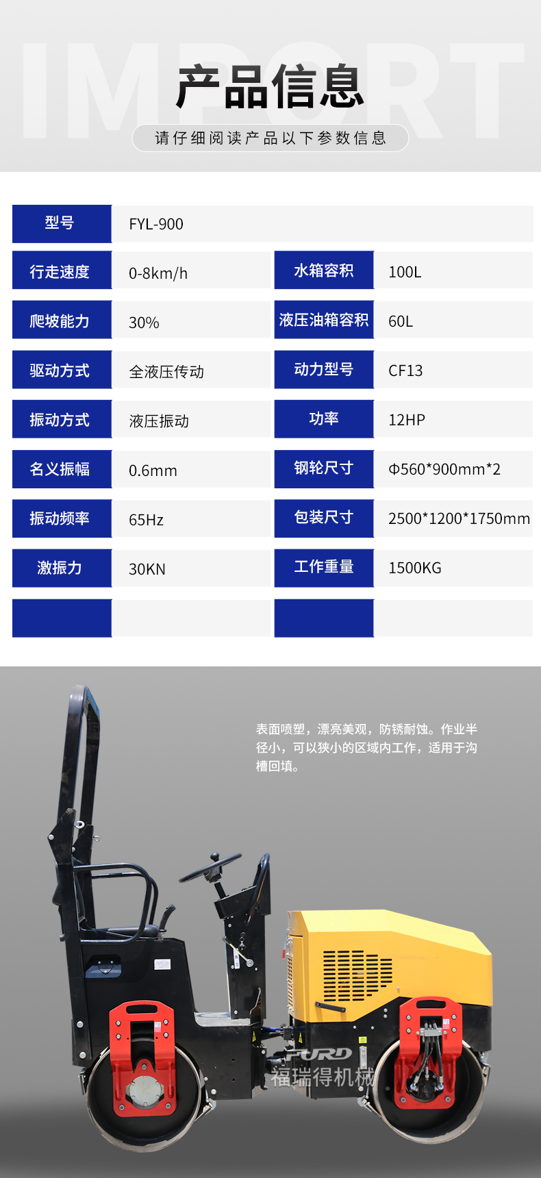 FYL-900CC 1.5噸全液壓振動壓路機(jī)