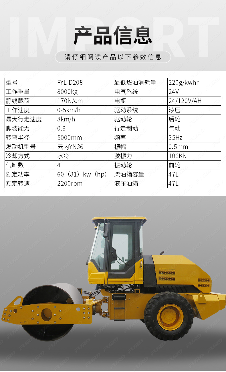 FYL-D208 8噸重型單鋼輪壓路機